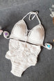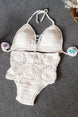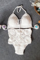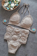 High-Waisted Swimsuit Solid Color Crochet Bikini